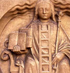 The surge, at the beginning of the XX century, of new spiritual theories such as Theosophy, Anthroposophy, etc., originated an artistic search narrowly tied to spirituality. Art took on a relevant role, beyond the esthetic, as a refuge in the spiritual search. The paradigm of this movements was the work of Wassily Kandinsky Concerning the Spiritual in Art (1912), based on the theories of Theosophy. This text would announce the new function that would have to with the characterizing of a work of art in the XX century and beyond. The artistic images, which with the birth of abstraction acquired a new potency, reemphasized the weakness of religious discourses for expressing the mystery. Traditionally, all spiritual examples had two faces: one inside and one outside. The exterior, or exoteric, gathering the well walked path of directions for devotions and rituals designed to take mankind towards salvation. The interior, or esoteric, is secret and only is known through the experience of initiation. On the medallion of Notre-Dame these two aspects appear through the two books that the personage hold in the right hand, one of them appears to be open and the other one closed.