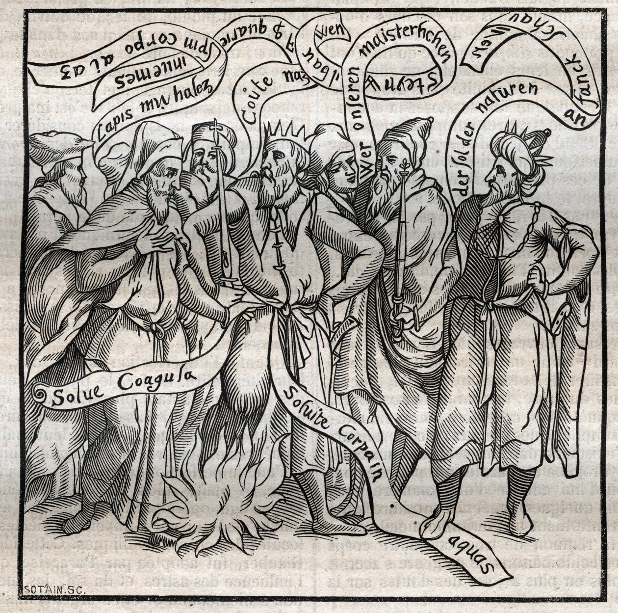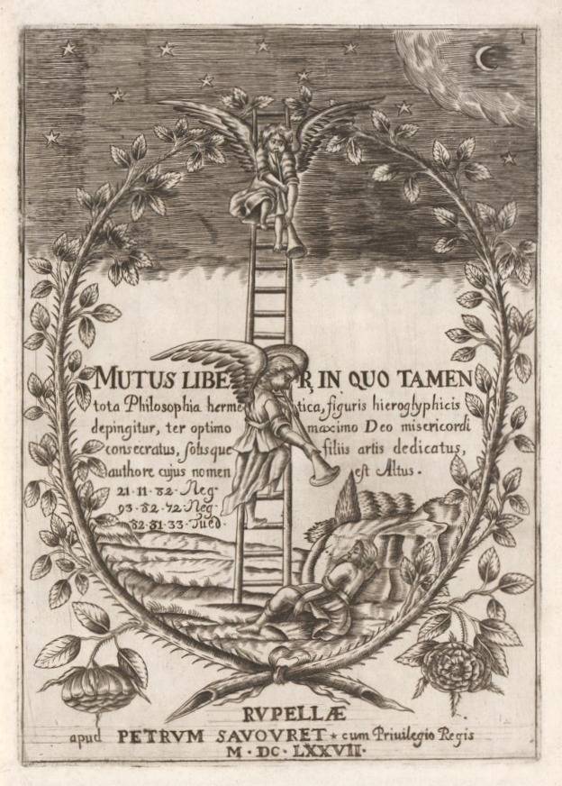 El título completo de la obra en la que aparece la lámina que presentamos es el que sigue: El Libro Mudo, en el que sin embargo está representada toda la filosofía hermética en figuras jeroglíficas, por tres veces consagrado al óptimo y máximo Dios de misericordia y dedicado únicamente a los hijos del Arte, por un autor cuyo nombre es Altus. La primera edición de esta obra apareció en La Rochelle, en 1677.