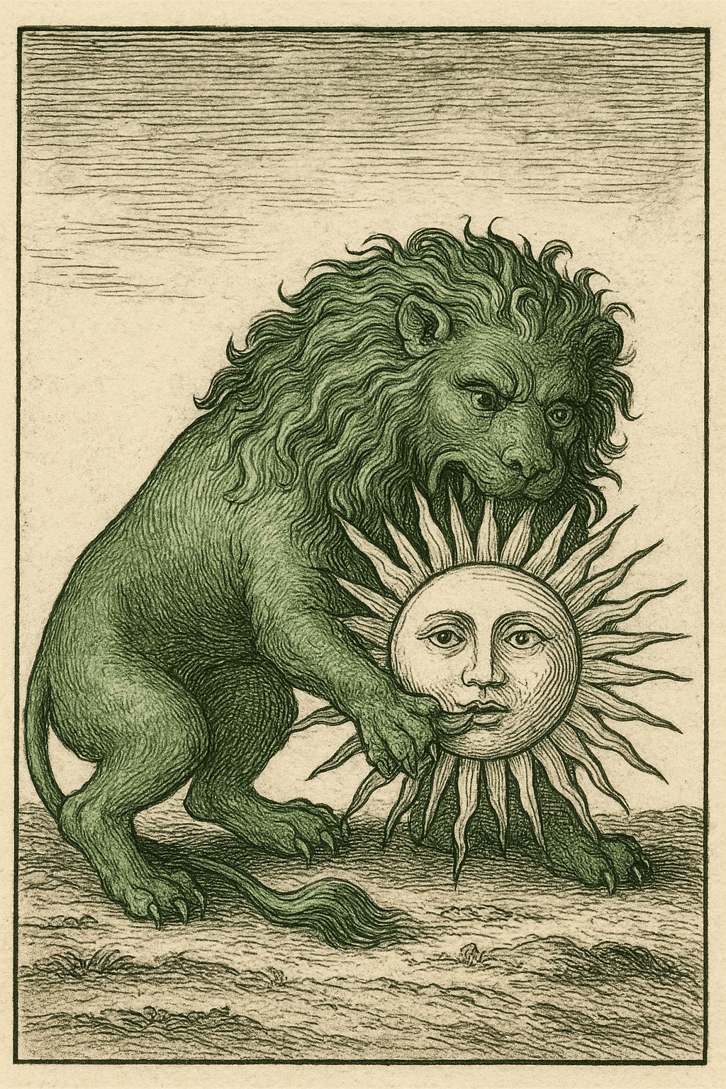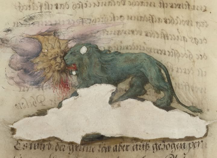 Michael Maier en la Atalanta Fugiens, en el Emblema XXI, representa a un león verde que devora al sol y, quizá siguiendo a Paracelso, escribe lo siguiente: