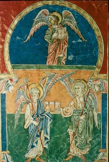 San Juan en el Apocalipsis 4, 3 describe su visión, que, como la de Ezequiel, es una epifanía de luces, sin forma ni rostro, y escribe: